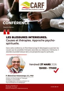 Dans cette conference, le pere Matanzonga SJ developpera aussi bien les causes que les possibles therapies associees aux blessures interieures. Il abordera la problematique dans une perspective psycho-spirituelle.